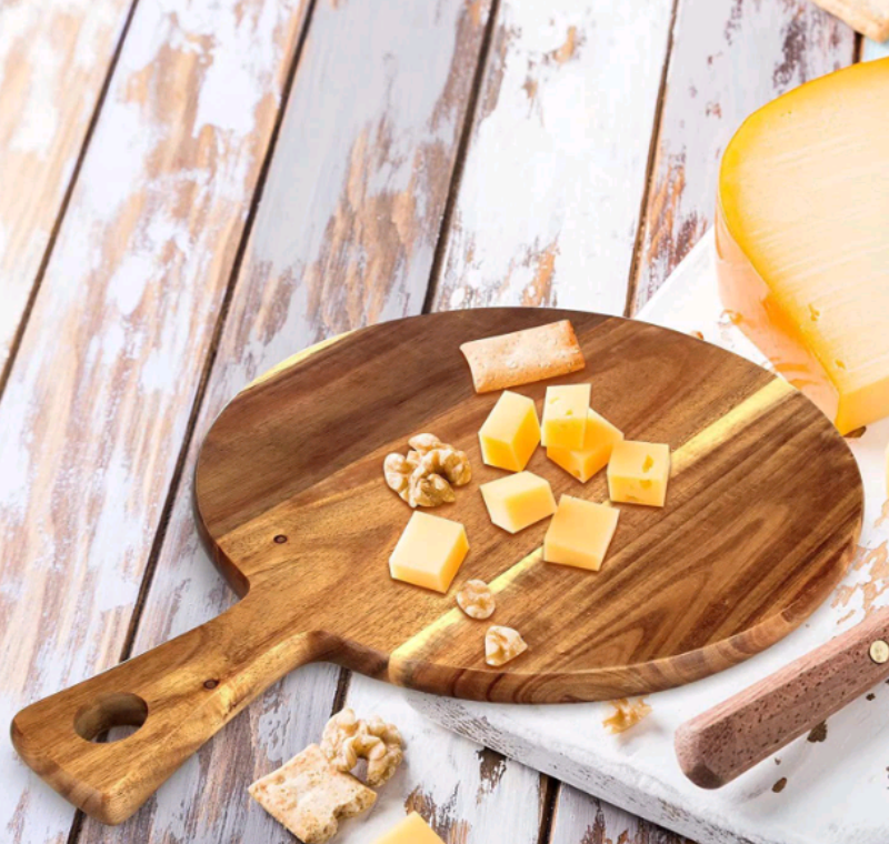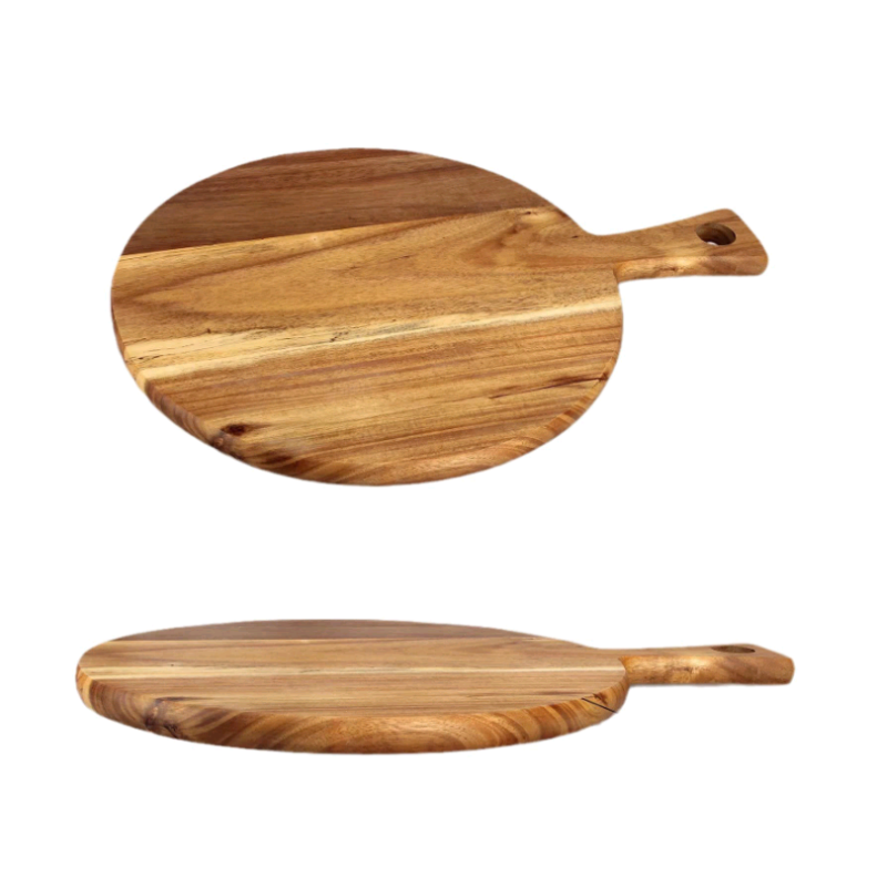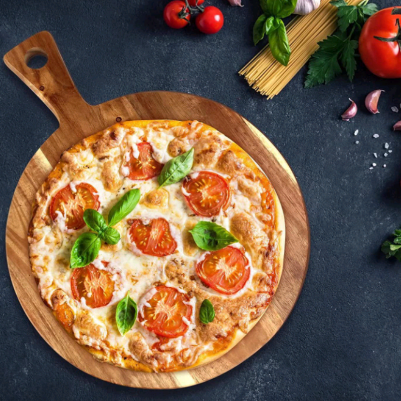 Round wooden pizza tray